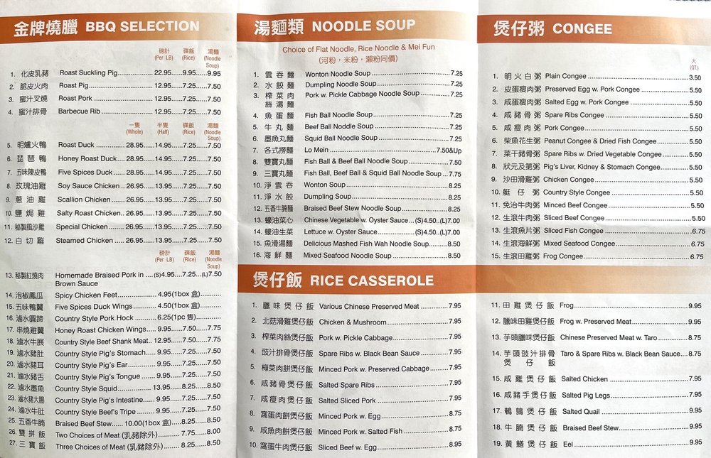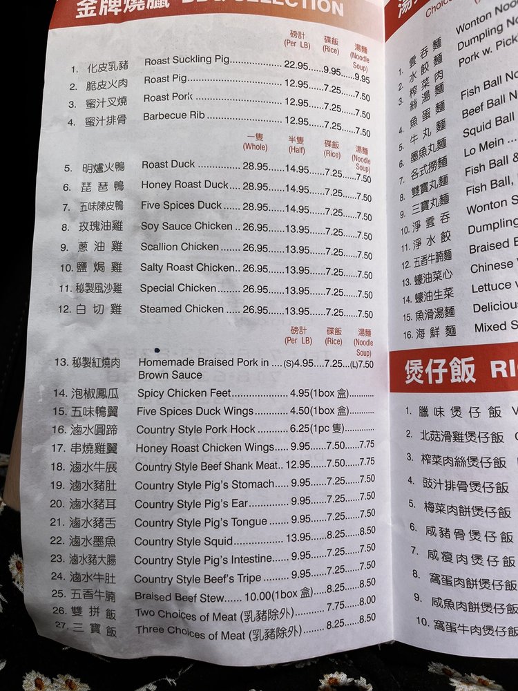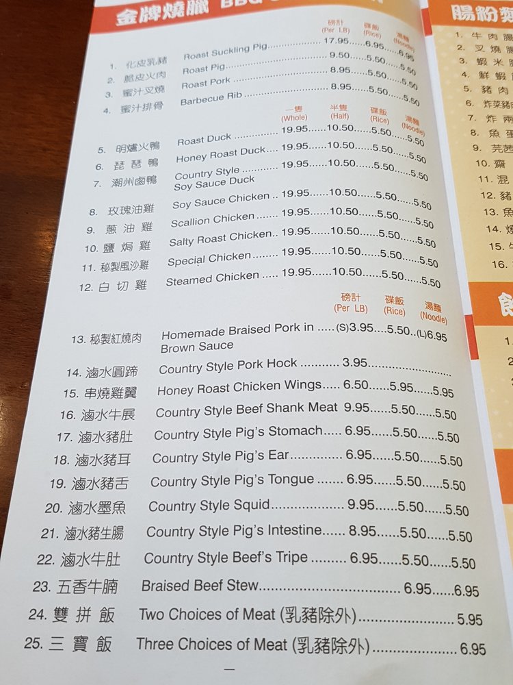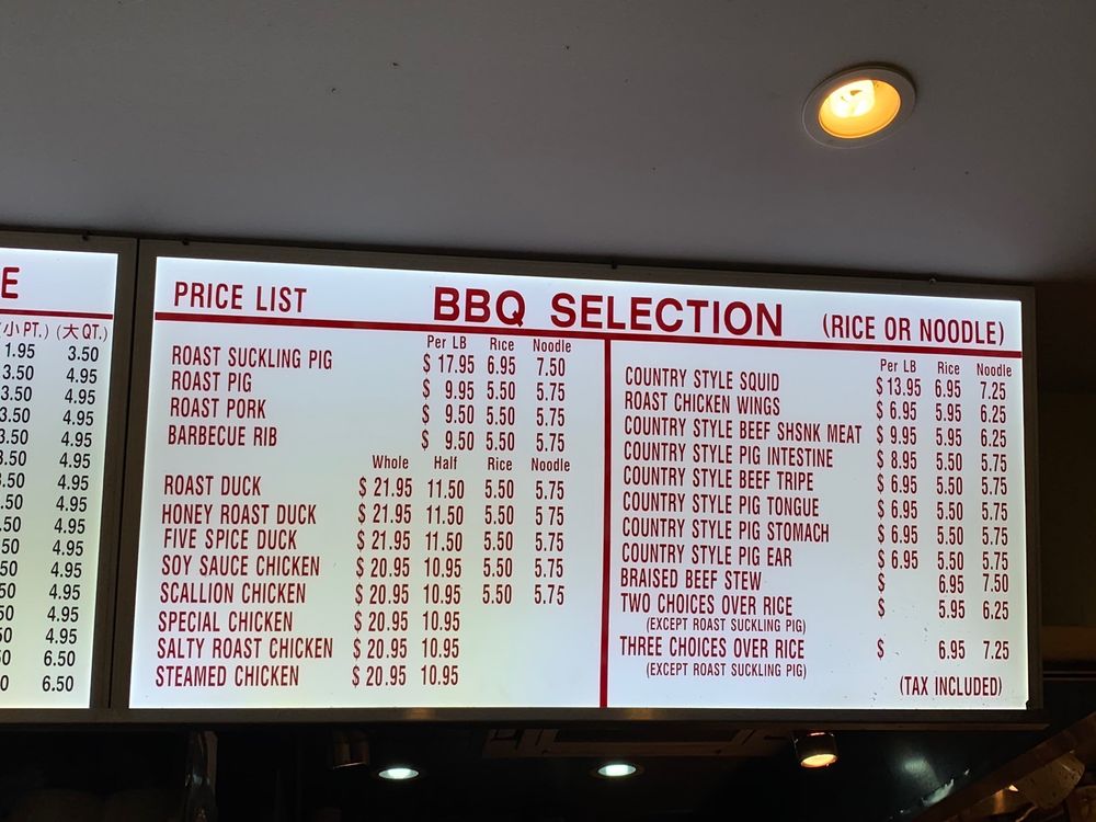 Most popular Roasted duck, cold chicken, BBQ pork over rice.