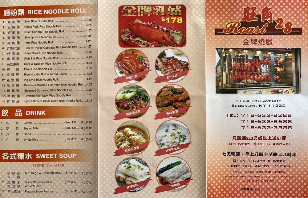 *Corner 28 - The Roast* in Brooklyn, NY, impresses with its succulent and saucey roast meats. Customers rave about the tender roast pork, crispy roast duck, and flavorful scallion chicken. The generous portions and top-notch sauces add to the dining experience. Although more of a takeout spot, the friendly staff and delicious offerings make it a must-visit. Prices are affordable, and the option to mix and match meats allows for a varied and satisfying meal. While the restaurant lacks classic noodle dishes, it excels in its roast meats and rice casseroles. With a cash-only policy, this Chinese spot stands out for its quality and value, making it a go-to destination for meat lovers.